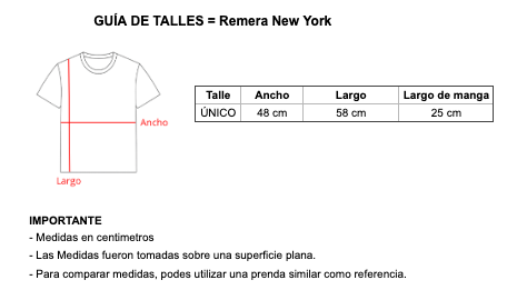 De algodón 100%, con estampa New York que aporta un guiño divertido y canchero a tu look. Su diseño de talle único se adapta a todos los cuerpos, convirtiéndola en la remera ideal para sumar a tus jeans, faldas o shorts favoritos.